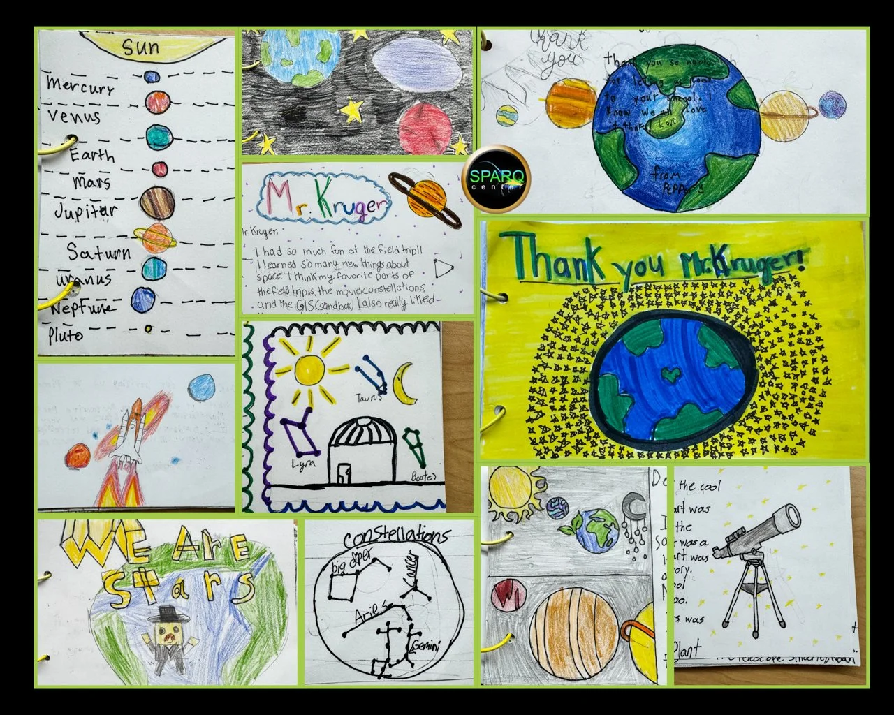 Mr. Kruger says one of the best things about having students visit our SPARQ Center are the thank you cards and books that schools send to him. Take a look at the wonderful art from Sarah Peterson’s 5th grade class from Sequoia Elementary School. Visiting students get to participate in hands on activities and see films in our full dome theater.