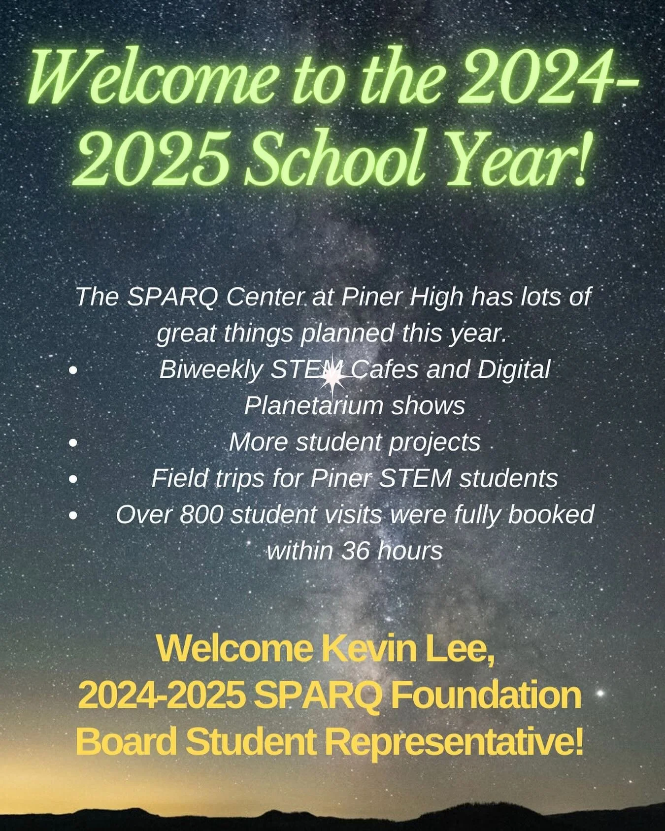 Our goal is to SPARQ the interest of our community and businesses in supporting the technological, educational, and enrichment needs of the SPARQ Center at Piner High School. Your support and donations will create new avenues for reaching the stars and beyond.